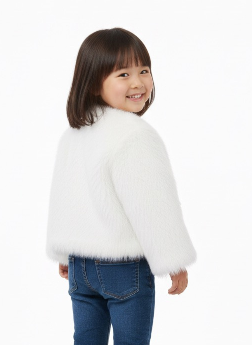 Lightweight yet warm, it ensures comfort without heaviness. Gentle on your child’s skin and ideal for layering, this pearl fur jacket is a must-have winter outerwear essential for stylish young girls.